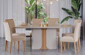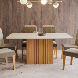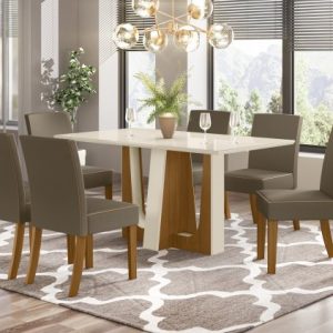 Mesa Ana 1,80 – Nature/Off White + 6 Cadeiras Fernanda – Madeira/Nude Cimol