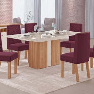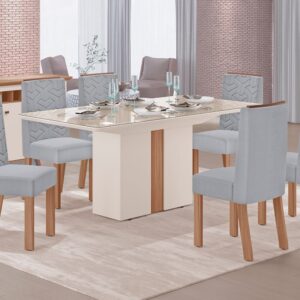 Sala (mesa) Olga 1,60 + 6 Cad Lara Off White+/ Amendoa P Off White+Roma Nikki Ean Tuboarte