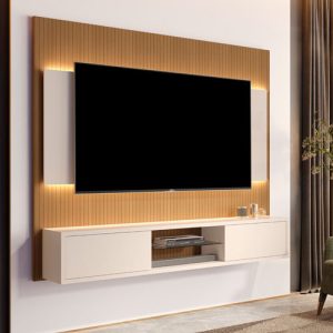 Painel Flávia p/ tv até 43″ off white amendoa plus Tuboarte