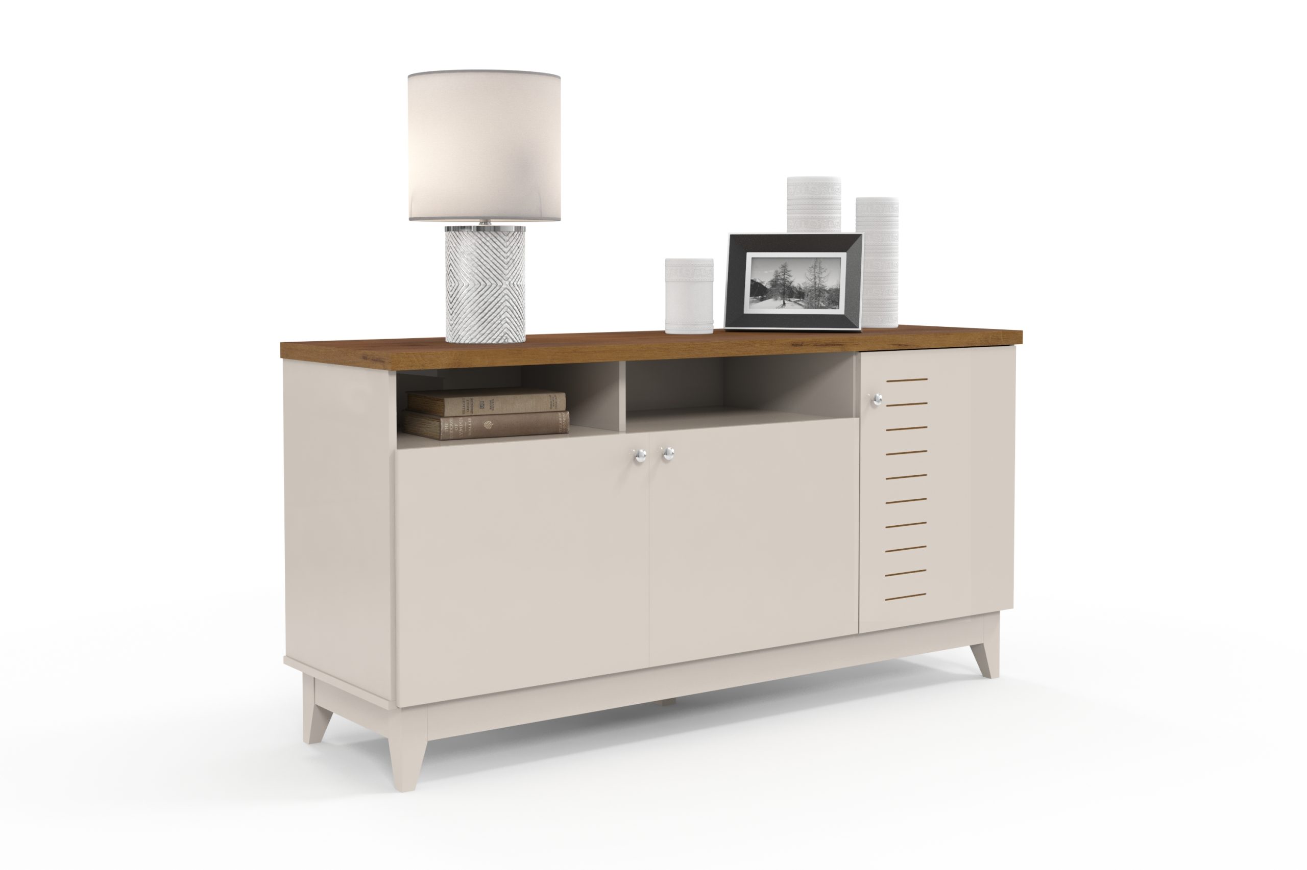 Quem nunca sonhou com um móvel clássico e elegante compondo o ambiente de casa, ein? A Linha Fascino apresenta a Bancada e Buffet Positano, que é perfeito para espaços como a sala e copa. Seus compartimentos internos permitem a organização de objetos como livros e, no caso da copa, louças e taças.