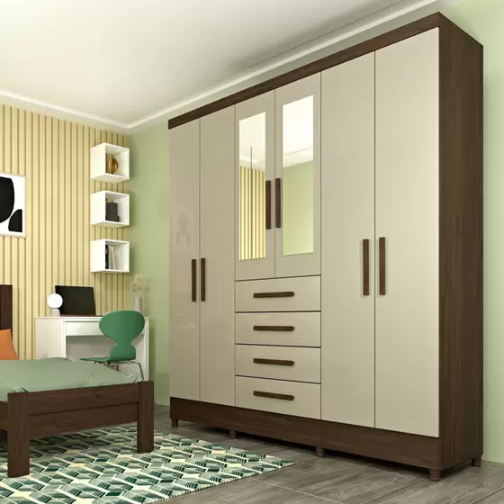 Roupeiro 6 Ptas Arizona C/8 Pes Cacau/Off White Tcil