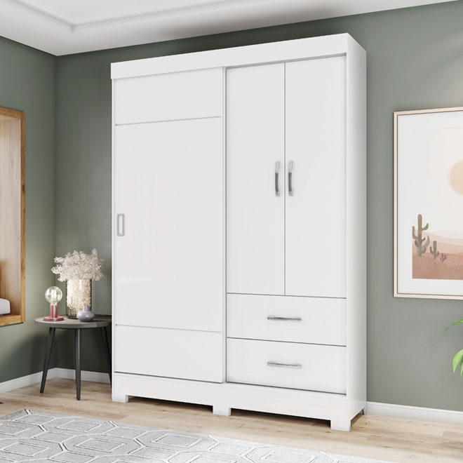 Roupeiro b59-66 03 Portas 02 Gavetas Branco Rosa Chá Henn