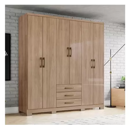 Roupeiro Caju 6 Portas Jequitibá Brilho Henn