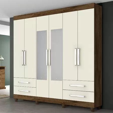 Roupeiro Nice 6pts Com Pe Espelhado Brn/Off Mad Marcs (Europa)