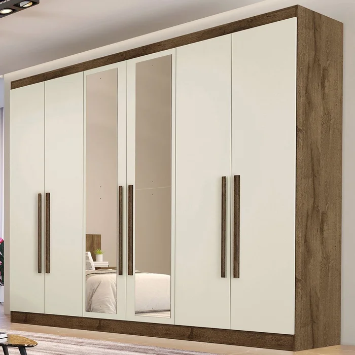 Roupeiro Oslo 6pts 4gav 100% mdf espelhado brn/off Made Macs